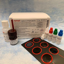 Latex para detección cualitativa y semicuantitativa de Cryptococcus en suero o LCR (Incluye control Negativo y Positivos Alto y Bajo) por 50 test Mas info en el sitio de Remel Inc
